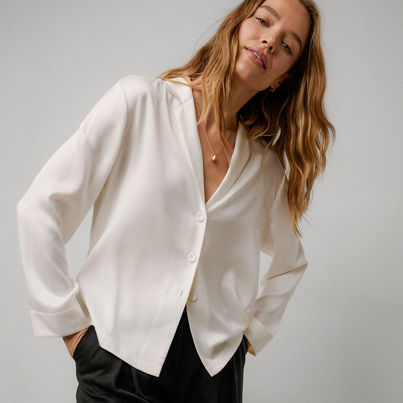 Consider the Washable Silk Button Up Long Sleeve your button-down upgrade. 100% Washable Silk, and cut to flatter without trying too hard. Tailored fit, silk-covered buttons, and a subtle back yoke adds just enough structure. Effortless, elevated and pairs with the our Washable Silk Boxer Short for a matching look. Or mix and match to your liking. Perfect for bridal prep, desk-less days, or any occasion that demands more than your average button-up.